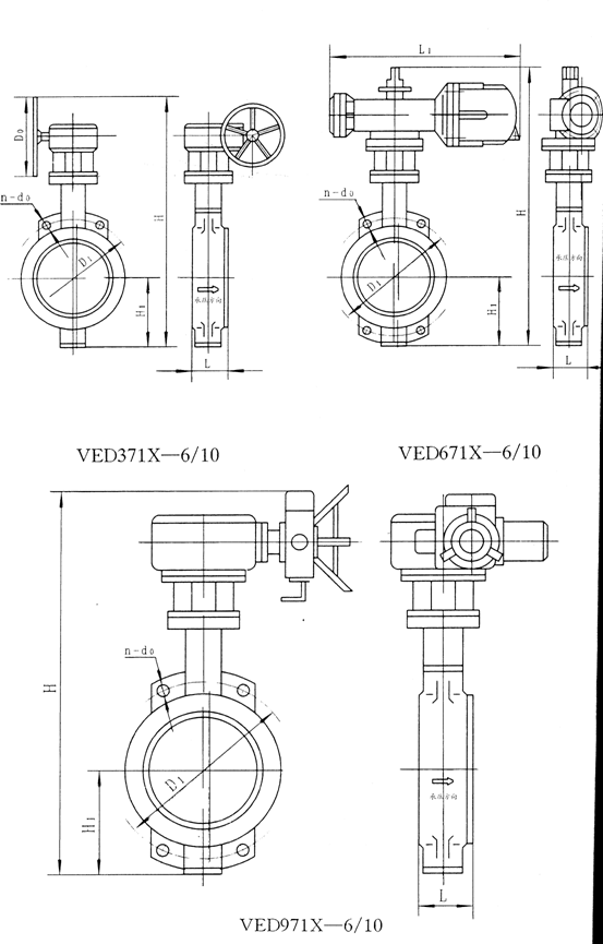 七、VED371X—16、,VED671X-16、VED971X—16型主要连接尺寸、外形尺寸及重量